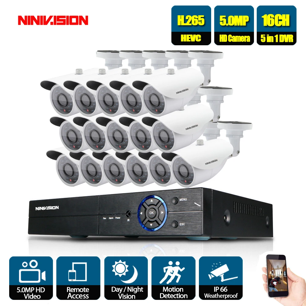 Best 16CH 5MP Ultra HD CCTV Camera System 5IN1 H.265+ DVR With 16PCS 5MP AHD TVI Weatherproof White Secu