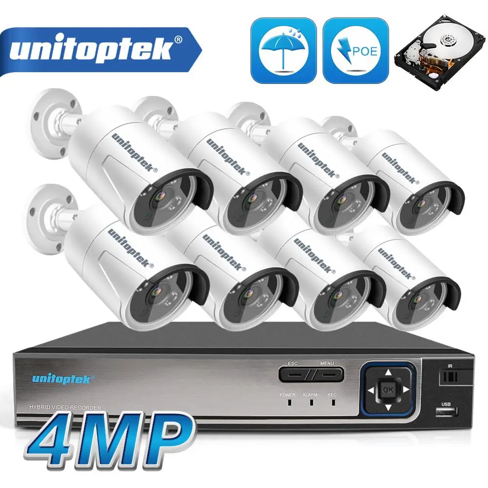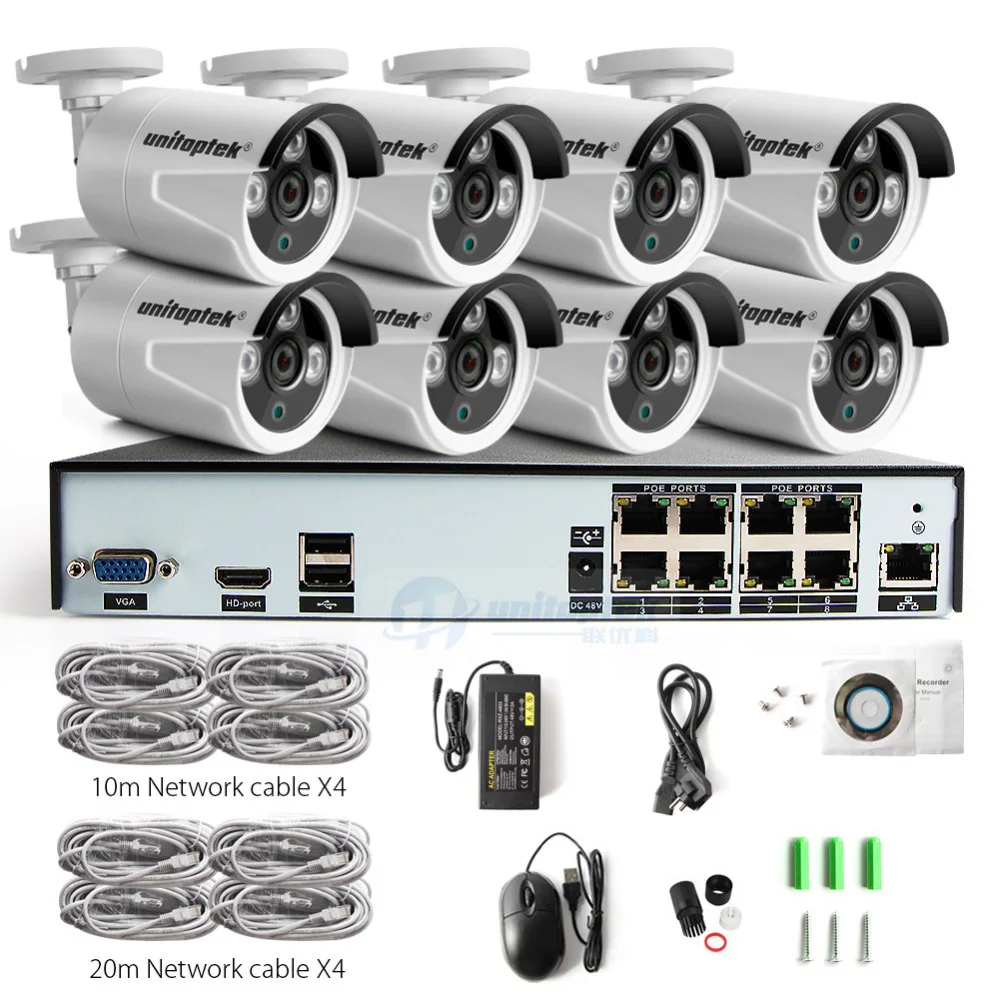 8CH POE NVR Kit 48V Power CCTV Camera System Onvif P2P 4MP HD H.265 IP Camera POE Outdoor Security