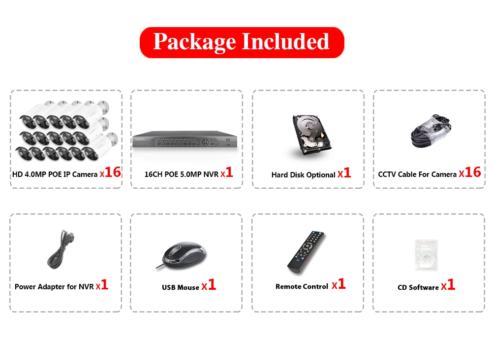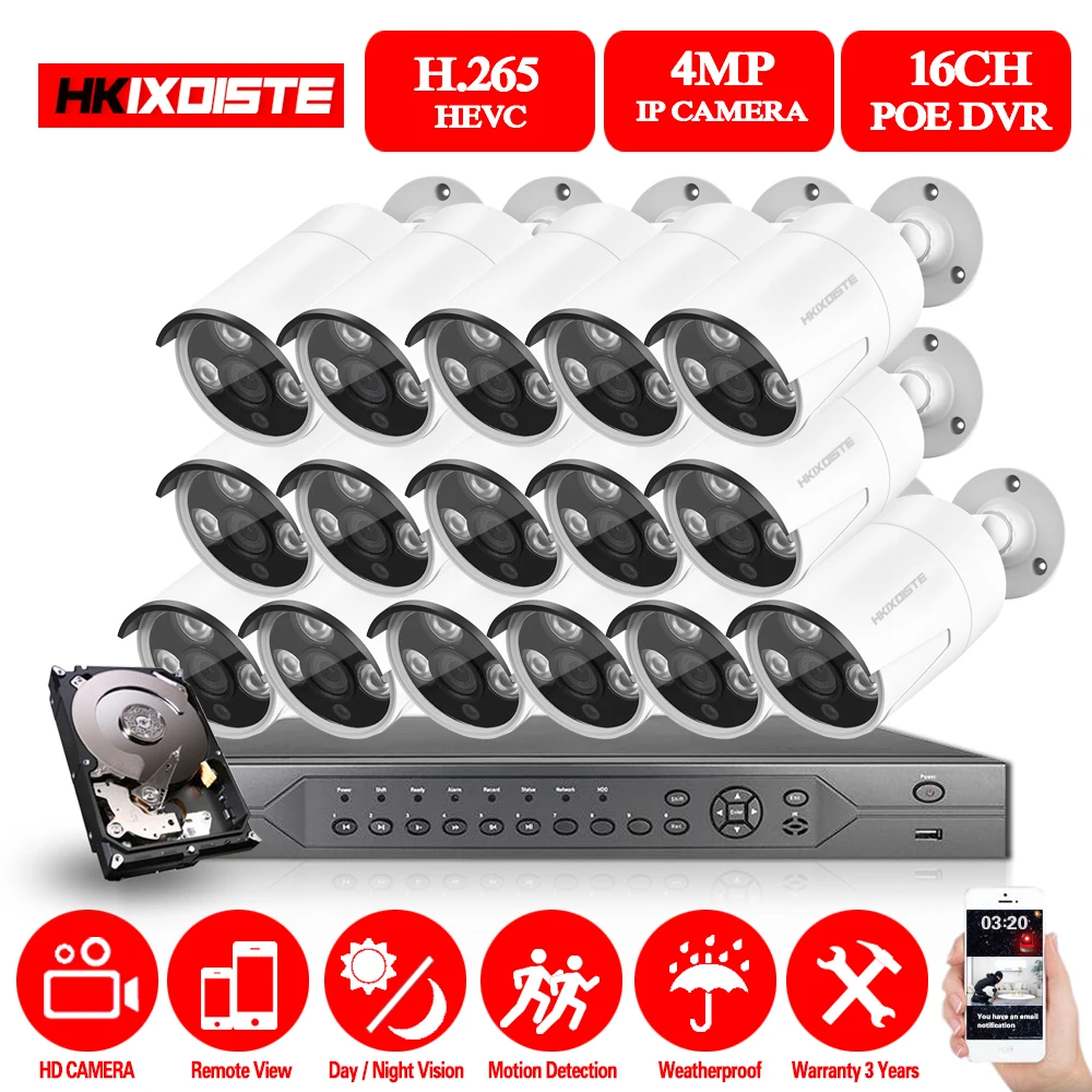 HIGH QUALITY H.265 16CH 4MP 5MP POE NVR CCTV Security System 16PCS IR Outdoor 1080P Audio Record IP Camera P2P V