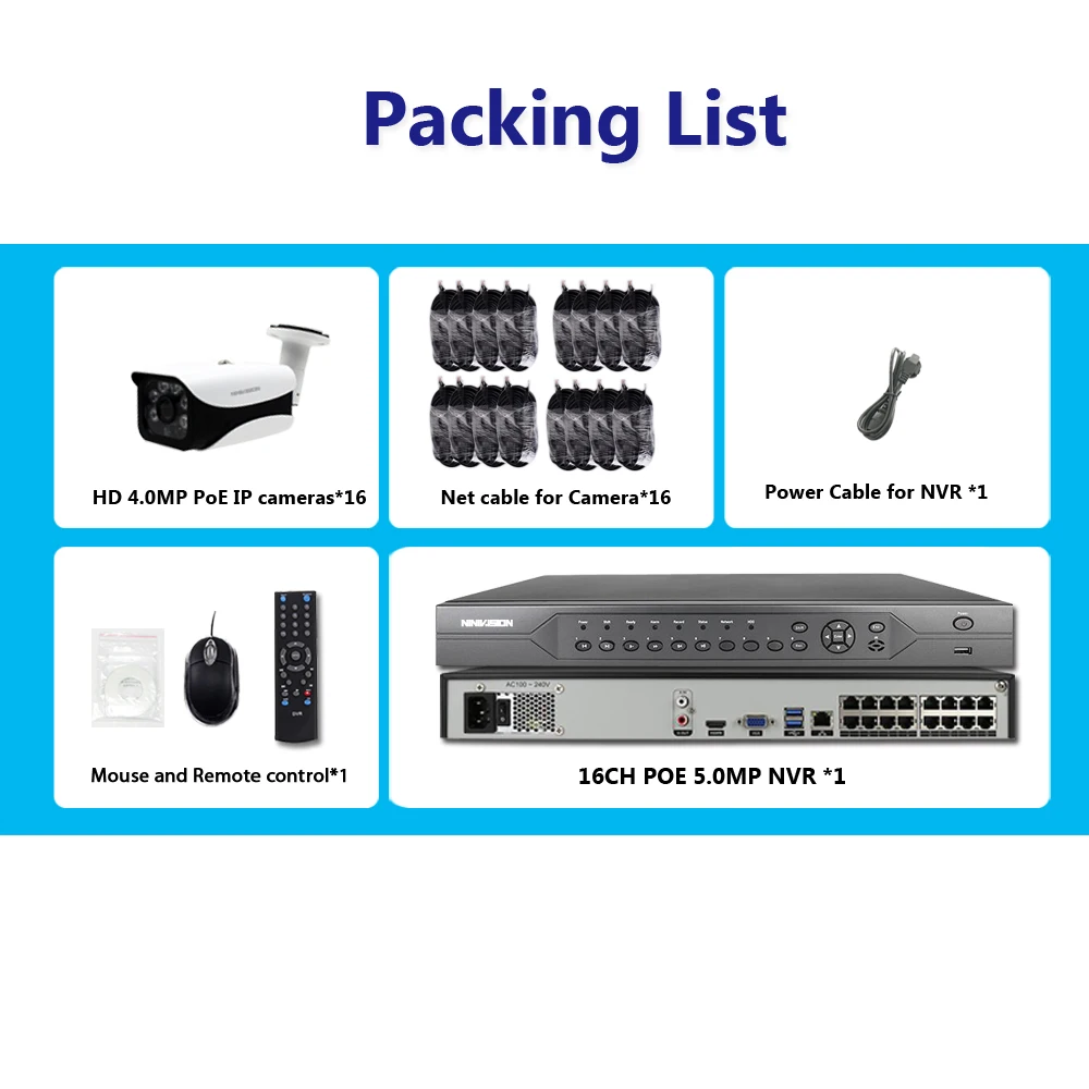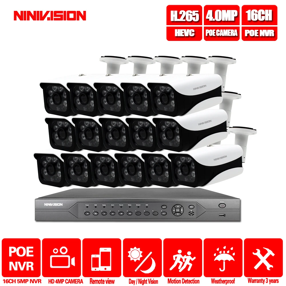 16CH 4K POE NVR 5MP 3MP kit PoE IP Camera P2P Cloud Onvif FTP CCTV System IR Outdoor Night Vision V