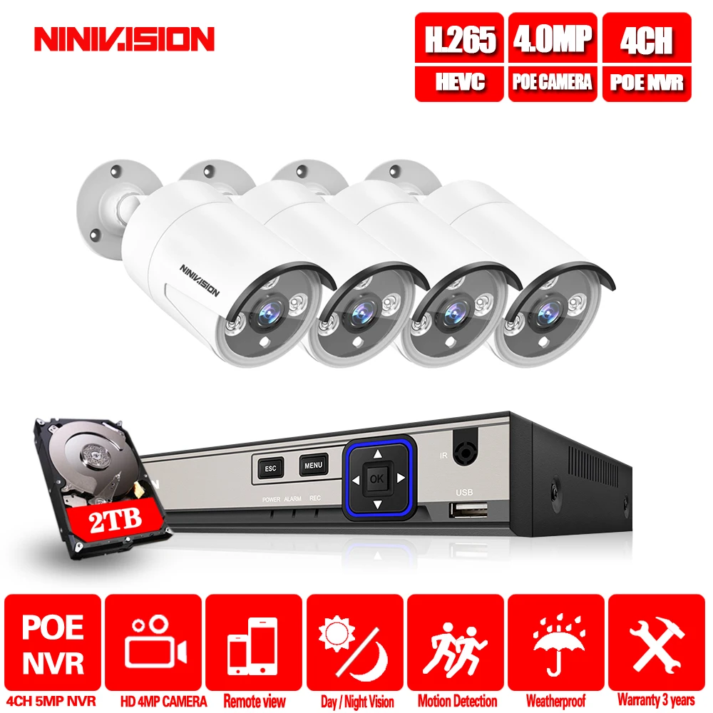 HIGH QUALITY 4CH 5MP POE CCTV System NVR Kit IR Night Vision 4.0MP Indoor Outdoor Security IP Camera P2P Video S