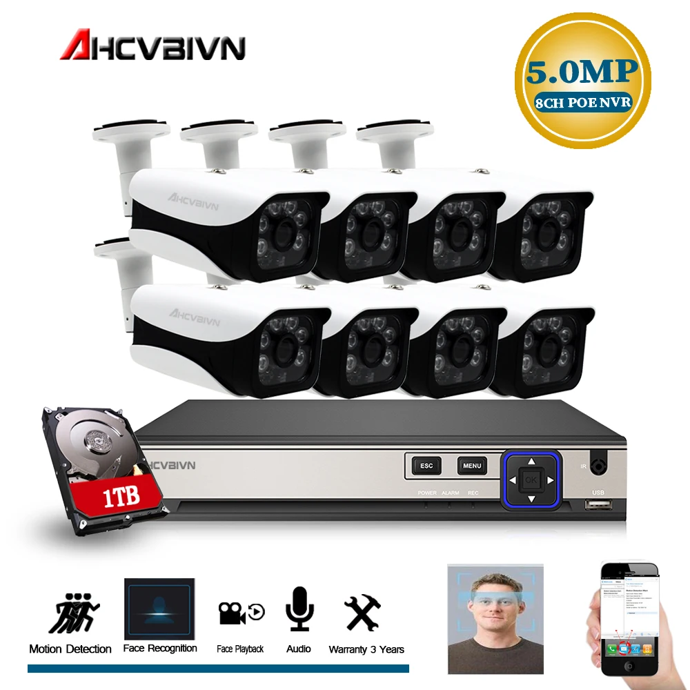 BEST QUALITY 8CH 5MP POE NVR Camera kit in/ Outdoor 5.0MP PoE IP Camera Audio Record Onvif FTP CCTV System Video