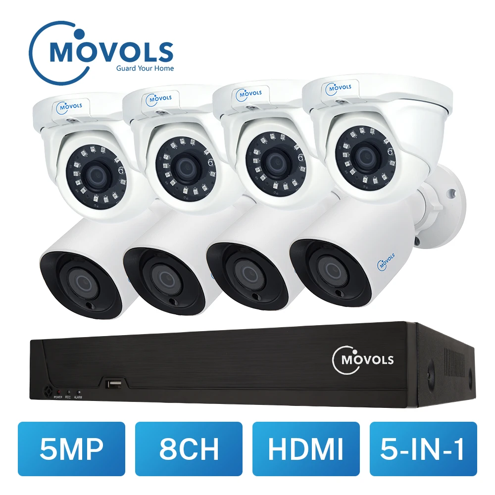Movols Video Surveillance Kit 5MP CCTV AHD 4pcs Bullet 4pcs Dome camera Outdoor Waterproof 8CH H.26