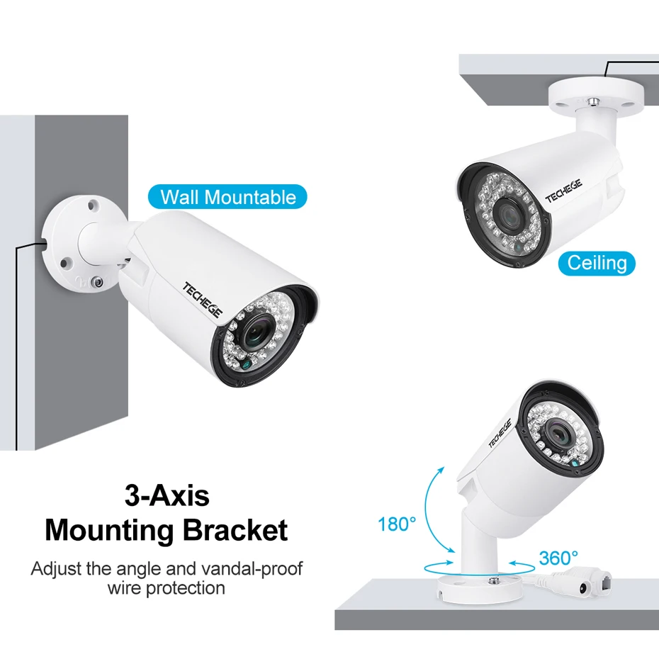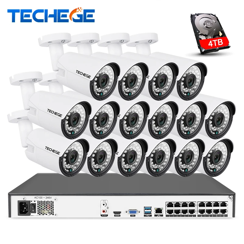 Techege 16CH 4K POE NVR 5MP Audio Cameras kit PoE IP Camera Onvif FTP CCTV System IR Outdoor Night