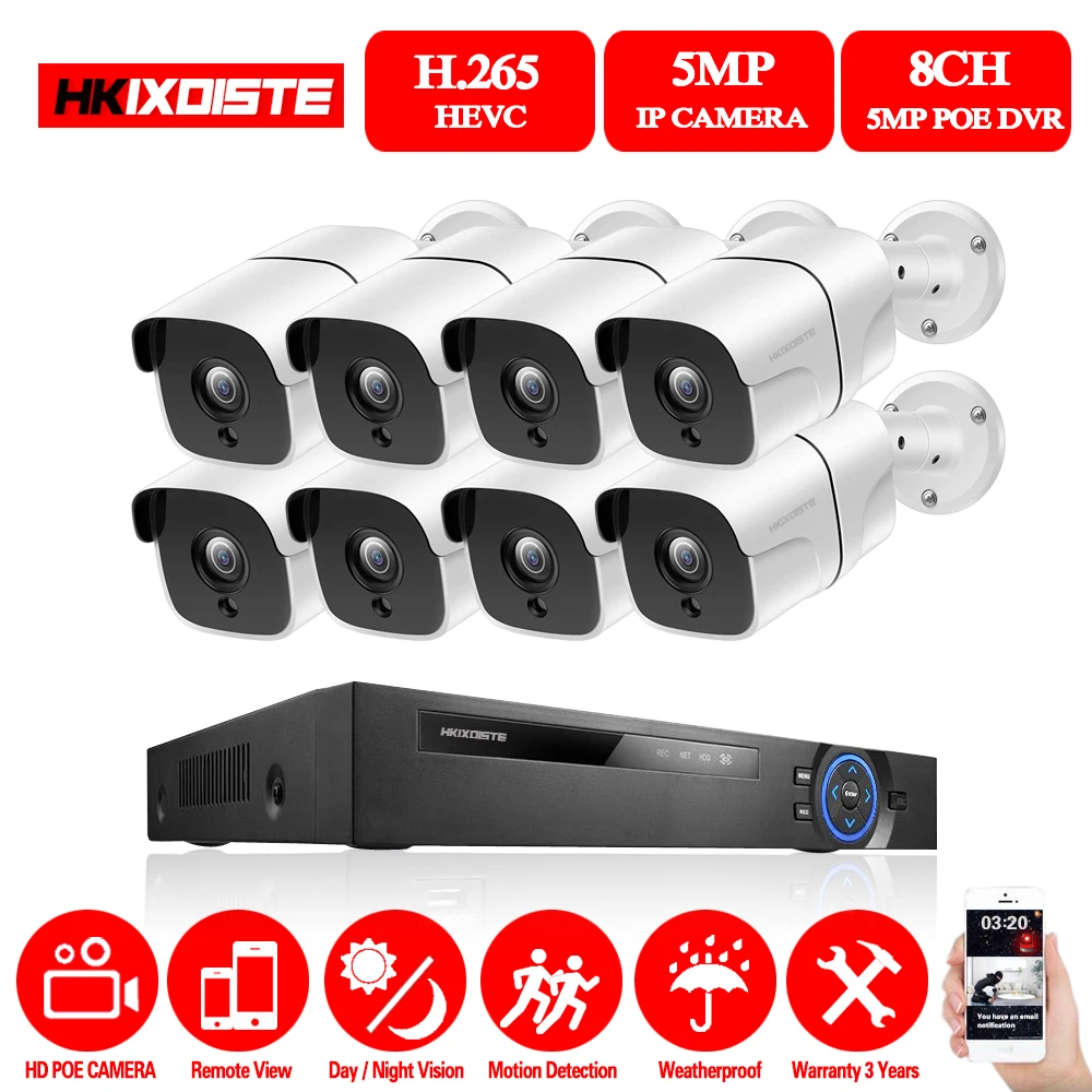 REVIEW TOP SELLER Full HD 5MP 8 Channel CCTV System 8PCS 5MP Metal Outdoor IP Camera 8CH POE NVR CCTV Kit P2P H.265 V