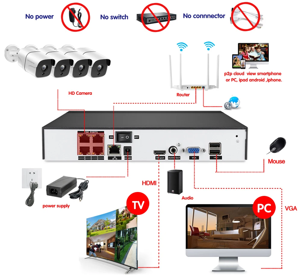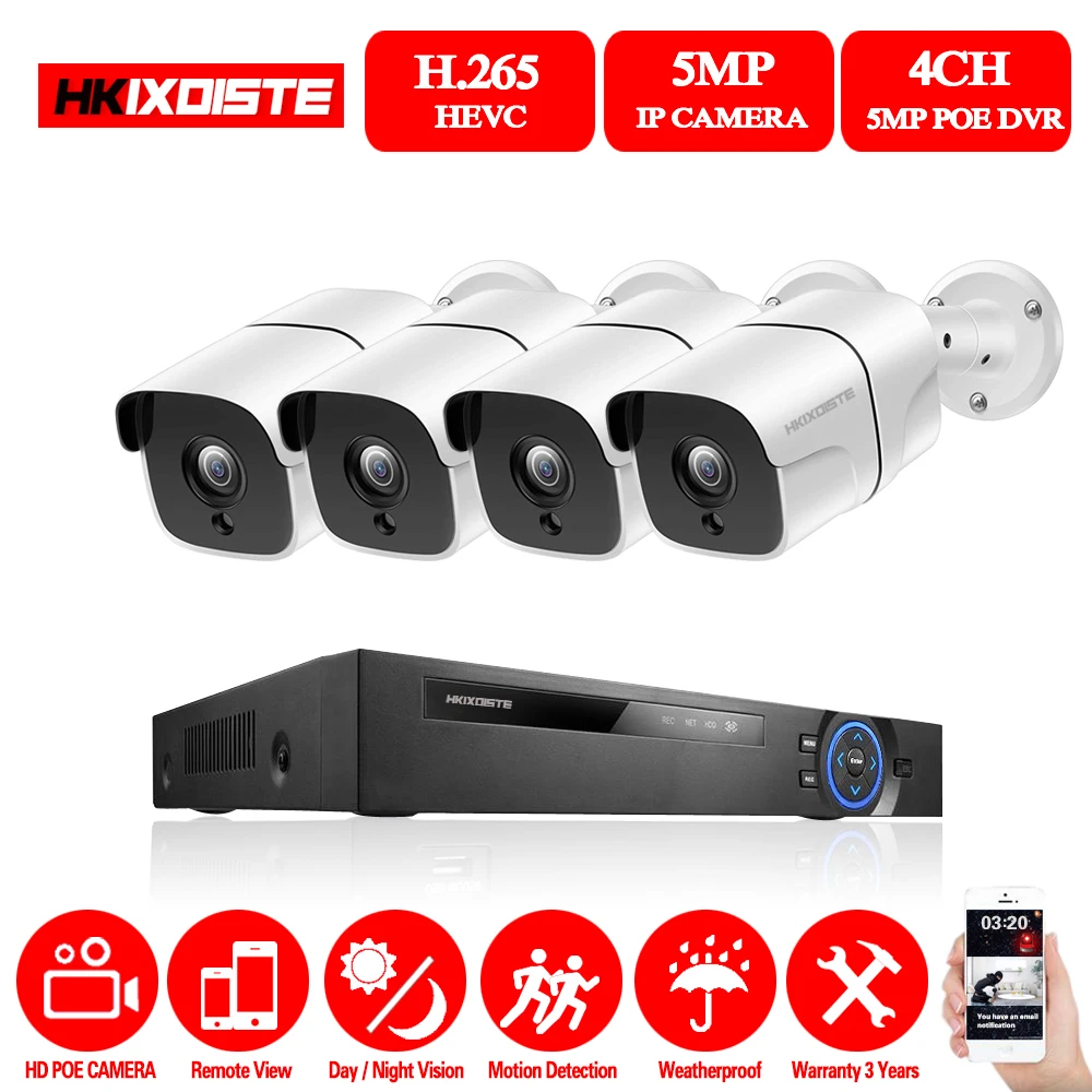 4ch 5MP POE Kit H.265 System CCTV Security Up to 4ch NVR Outdoor Waterproof IP Camera Surveillance