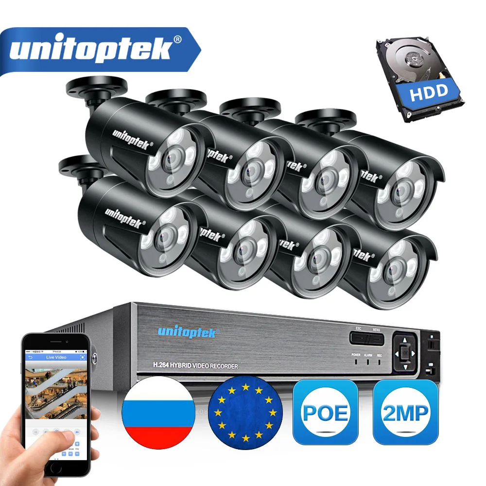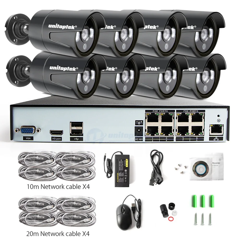 8CH 4MP CCTV POE NVR CCTV Security System Kit (8) 2.0MP Outdoor Onvif IP Camera IP66 Waterproof IR