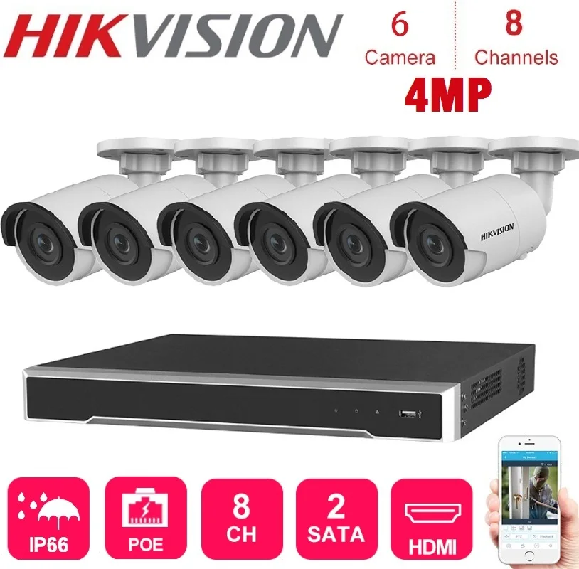4K Network 8-CH Hikvision Nvr Video Recorder With 6 Pcs 4MP Waterproof Ip Camera Night Vision CCTV