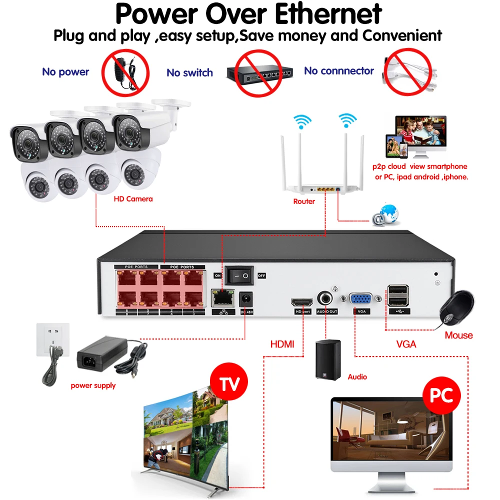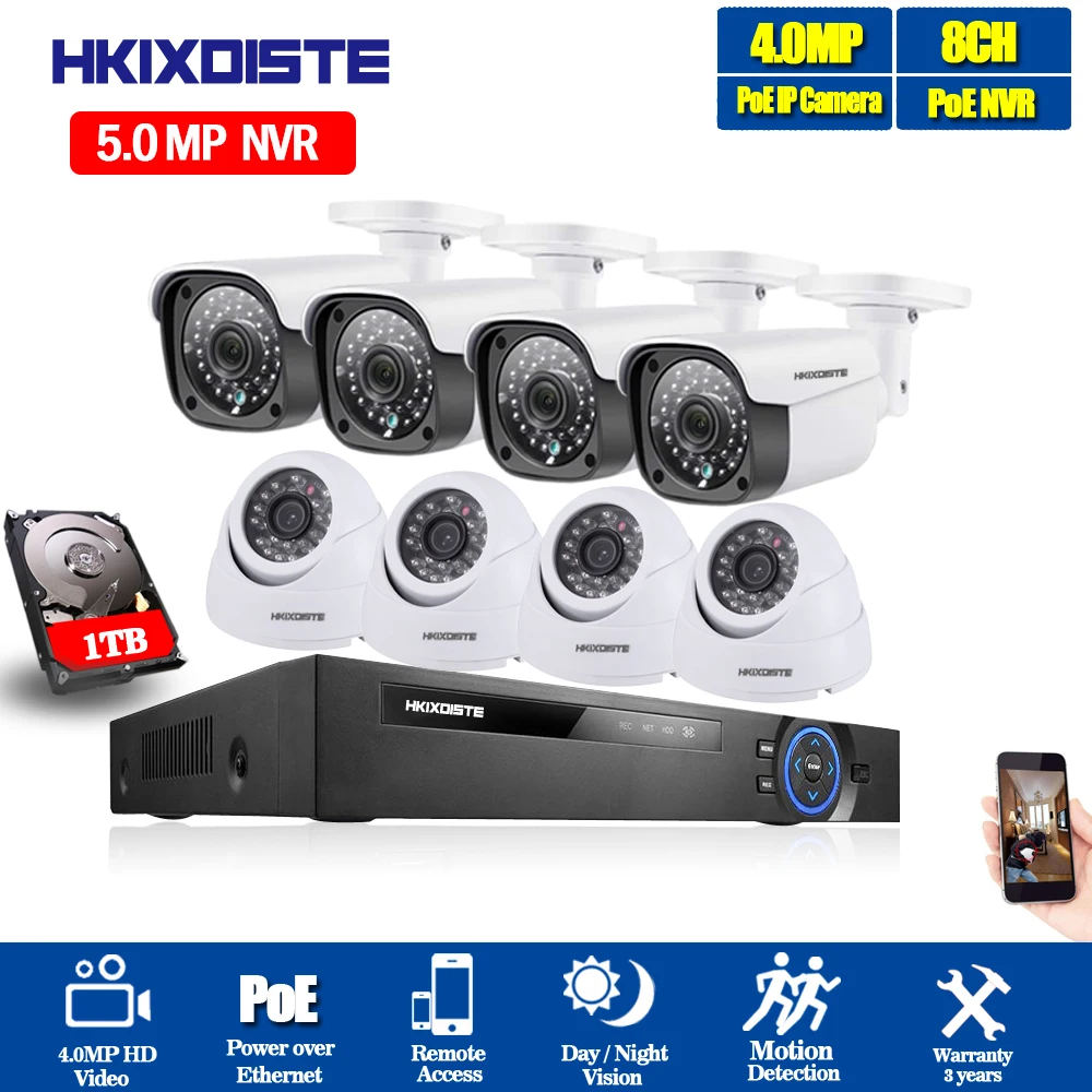 5MP POE NVR Kit 8Pcs 4.0MP HD CCTV POE Security camera System IP Camera P2P In/Outdoor IR-CUT 2 Bul