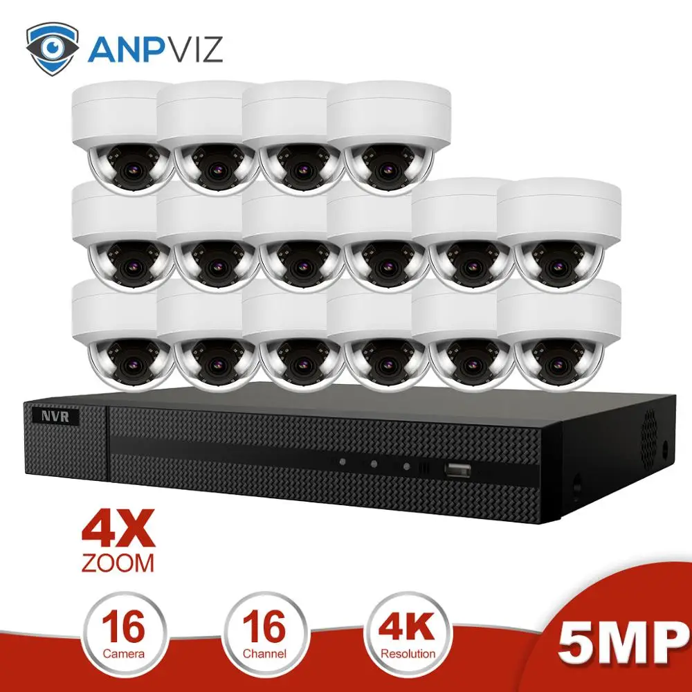 ORIGINAL Anpviz 16CH 4K NVR 5MP POE 4X Optical vari-Focal IP Camera Kit Security Outdoor 8/10/12/16Pics CCTV