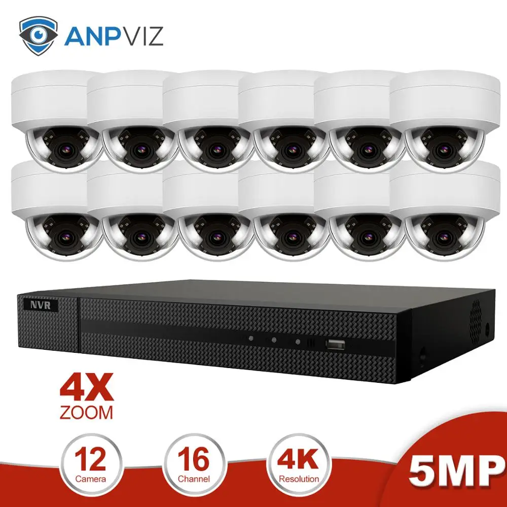 Anpviz 16CH 4K NVR 5MP POE 4X Optical vari-Focal IP Camera Kit Security Outdoor 8/10/12/16Pics CCTV