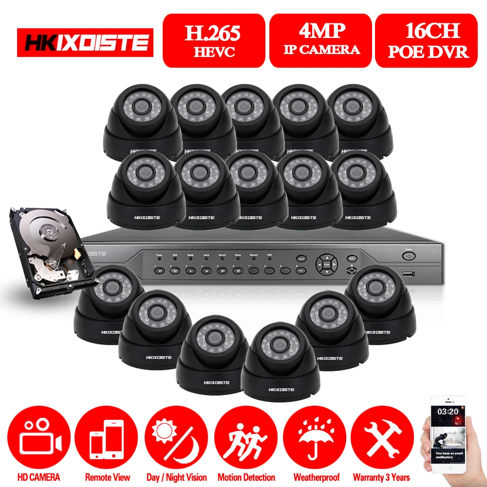 H.265 CCTV System 16CH 5MP POE NVR 4MP IP66 Vandalproof Dome Security Onvif IP Camera Audio Record