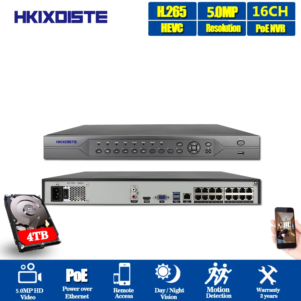 BEST SELLER HKIXDISTE 4K 16CH H.265 CCTV POE NVR 48V 16Channel*5MP/ 8 Channel*4K Surveillance CCTV Network Vide