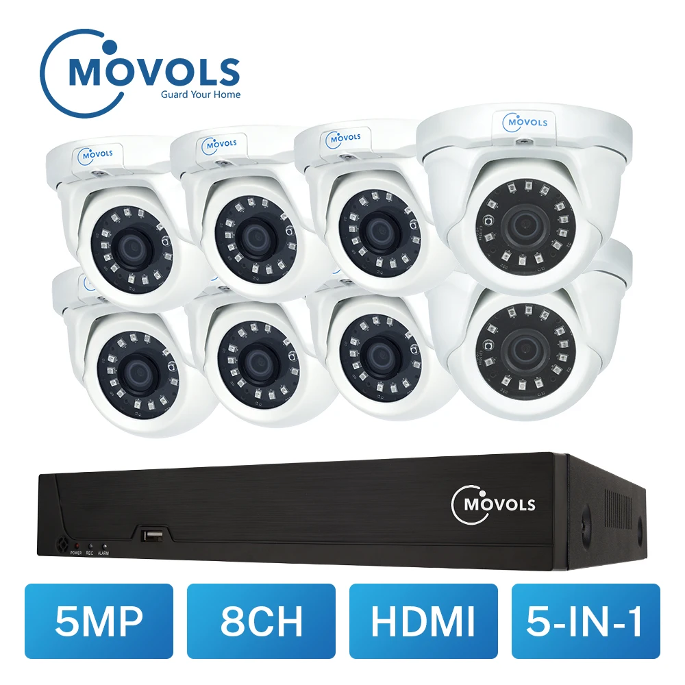 Movols 8CH 5MP CCTV Camera System H.265 NVR Kit 8PCS Outdoor Security Camera P2P IR-CUT indoor doom
