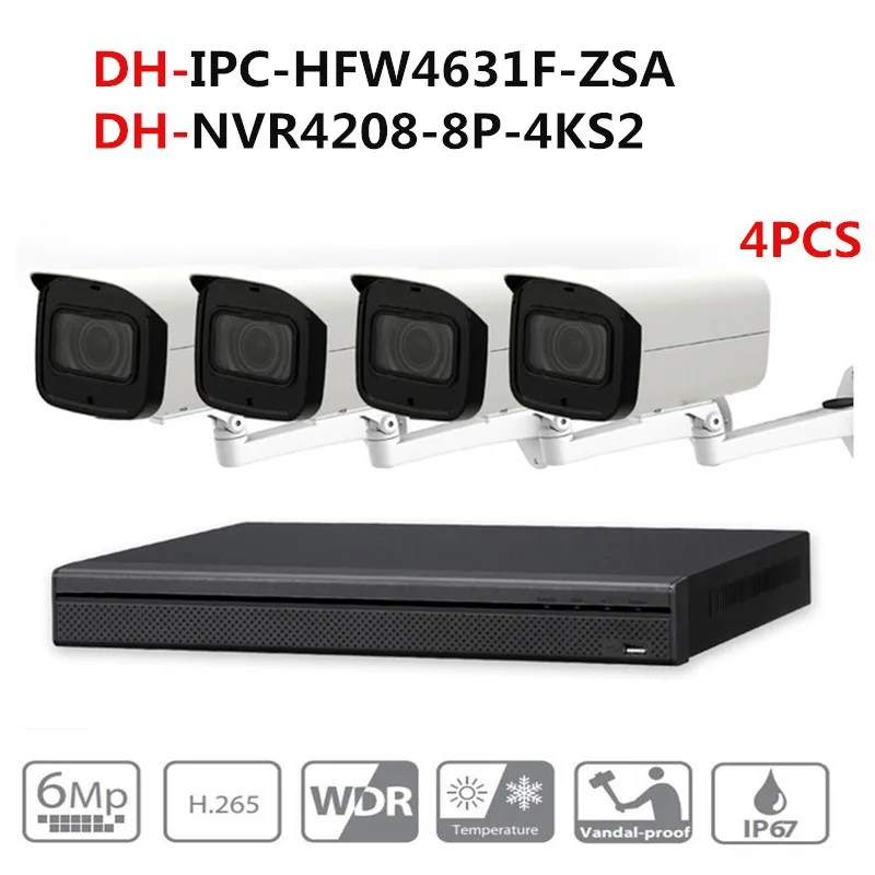 ORIGINAL DH CCTV Security System Kit 4Pcs 6MP POE Zoom IP Camera IPC-HFW4631F-ZSA & 8POE 4K NVR NVR4208-8P-4