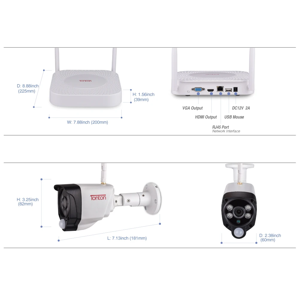 TOP Tonton 8CH 1080P Audio Recording PIR Sensor Wireless CCTV System Wifi NVR Kit 2MP Outdoor IP Camera