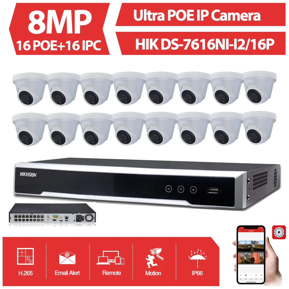 NEW 16CH CCTV System kit Ultra 8MP Outdoor Security POE Camera with Hikvision 8 POE NVR DS-7616NI-I