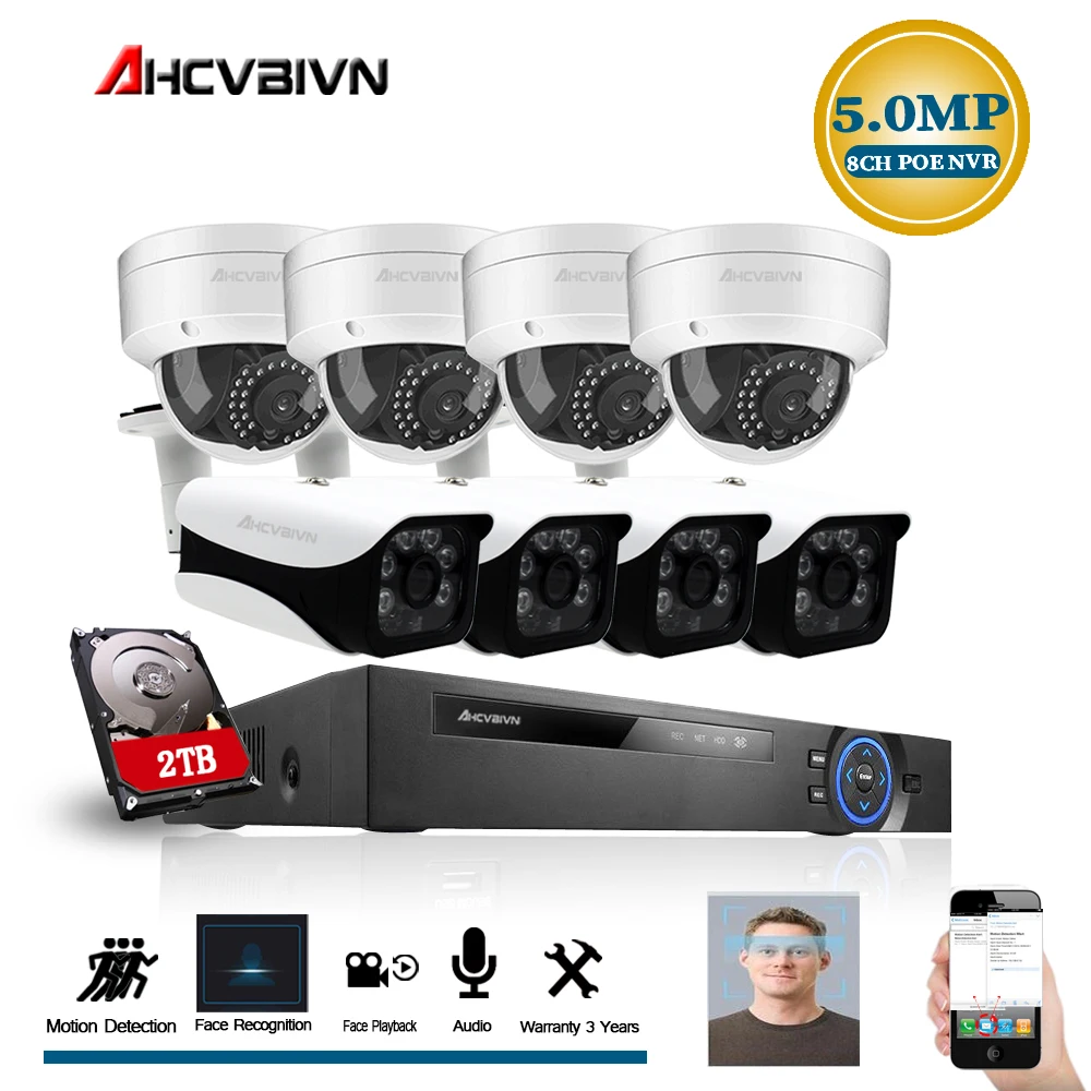 ORIGINAL 8CH 5MP NVR Wireless Wifi Audio Sound CCTV Security System 5MP Dome IR Cut Camera Home Surveillance
