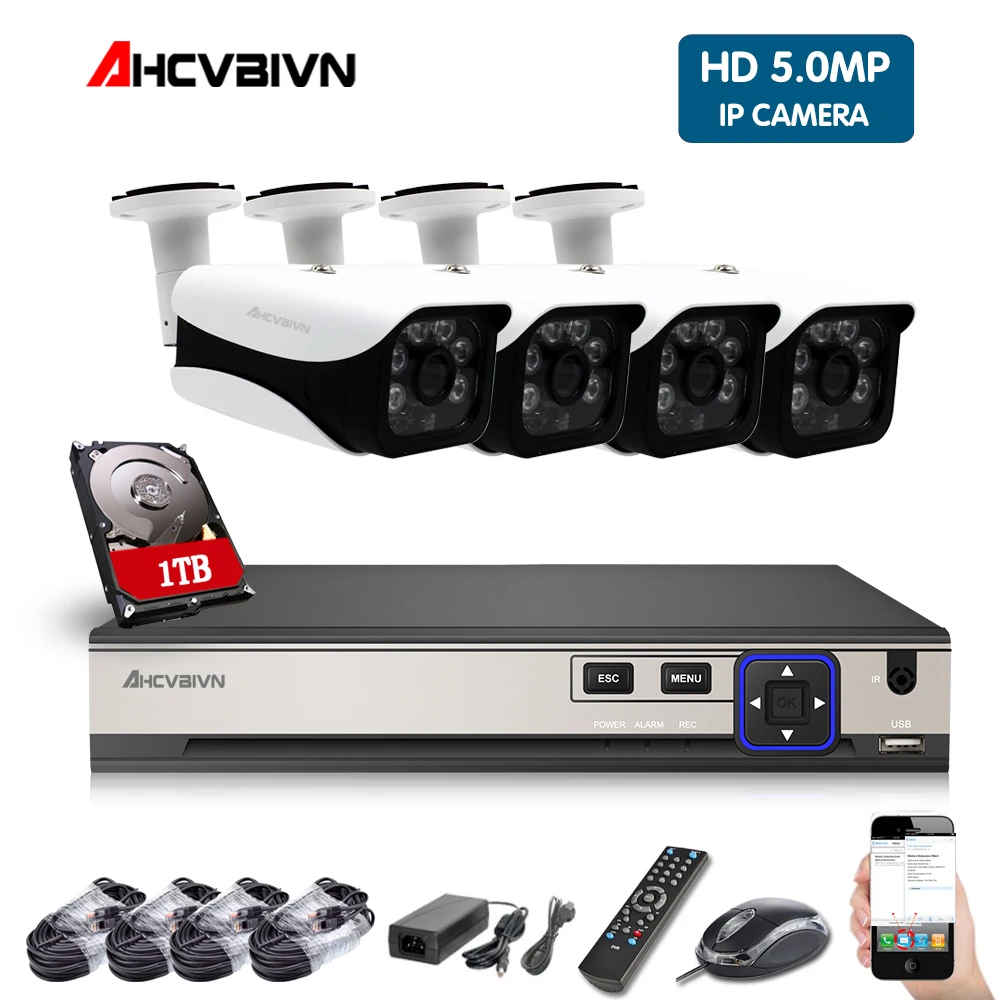 HOT Sale CCTV Camera System POE 4CH NVR Kit 48V Onvif 5.0MP Security Camera System HD IP Camera indoor Outdo