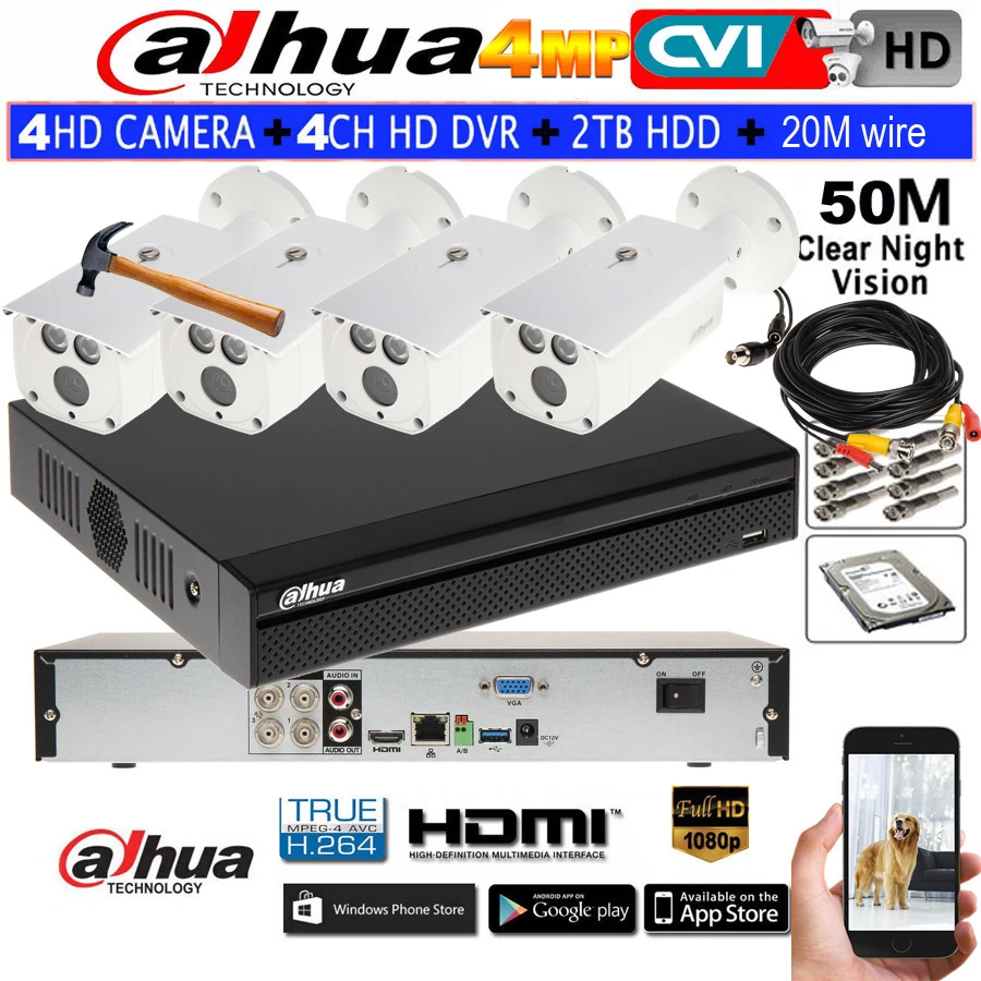 Dahua 4MP IR waterproof camera DH-HAC-HFW1400DP Security CCTV bullet camera 4CH DH-HCVR7104H-4M CVI