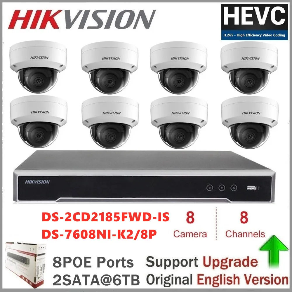 ORIGINAL Hikvision CCTV System 8MP Camera System 8 Channel PoE NVR & 8 PoE IP Cameras Dome Outdoor HD Video